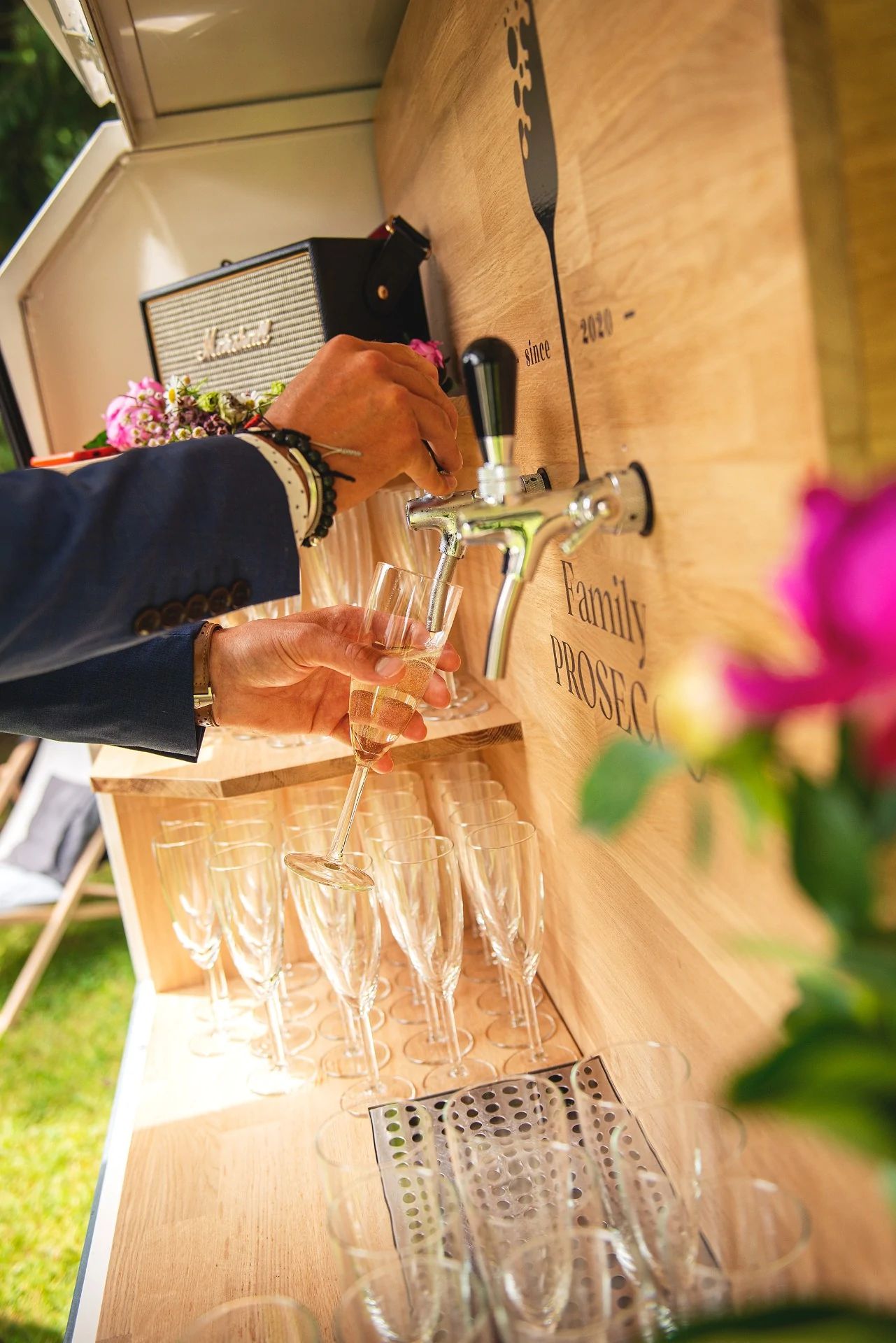 Náš elegantní bar na kolech je ideální volbou pro svatby, oslavy, firemní akce nebo festivaly, kde chcete své hosty okouzlit nejen lahodným čepovaným frizzante, ale i nezapomenutelnou atmosférou.